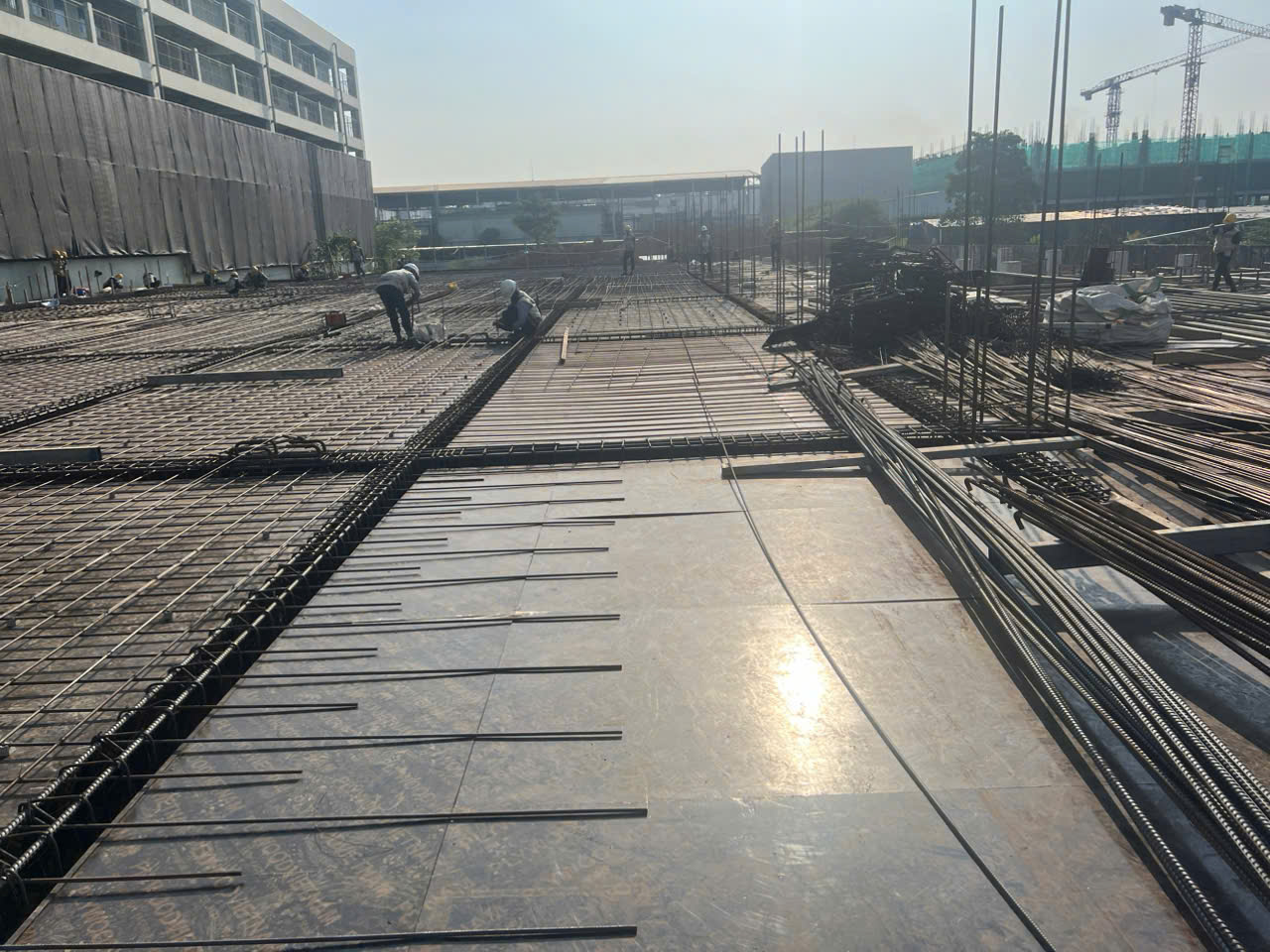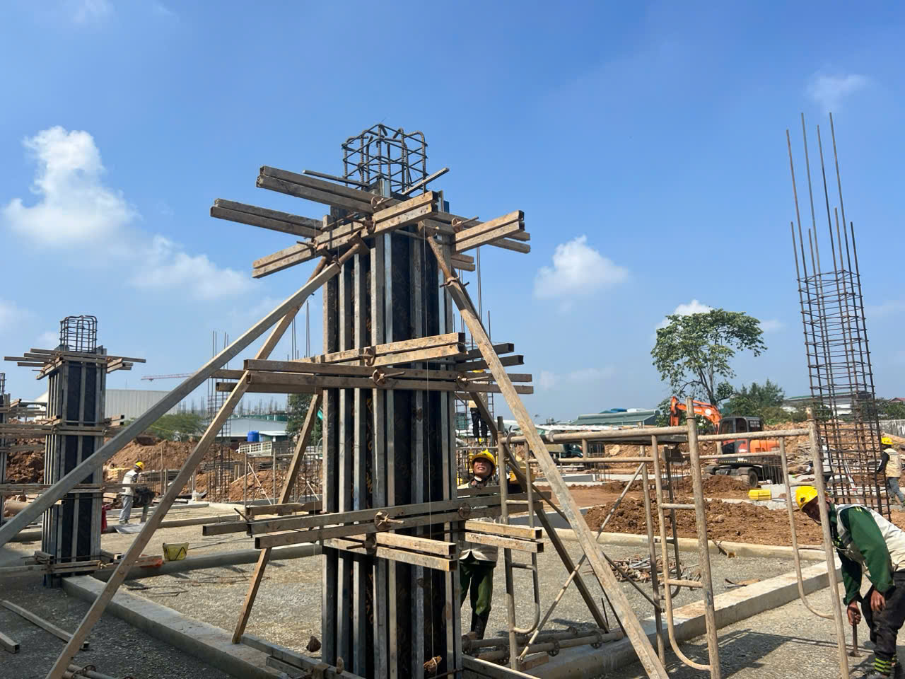 Công việc xây dựng tầng 1, 2 ký túc xá C ở MKVC