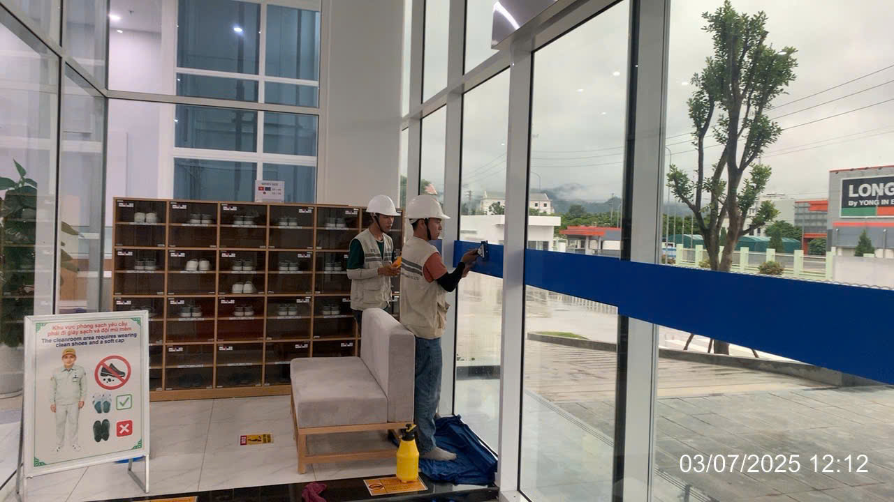 Dự án thi công film cách nhiệt & Aluminum – Nhà máy 1-1 Meiko Hòa Bình Thi công dán film cách nhiệt cho hệ thống kính, giảm nhiệt, chống tia UV, tiết kiệm năng lượng. Lắp đặt tấm Aluminum cho tường, vách, trần, tăng tính thẩm mỹ và bảo vệ công trình.