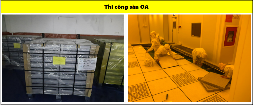 - Thi công sàn OA: Sàn nâng trong phòng sạch, H = 300mm, Tải trọng: 600kg / m2